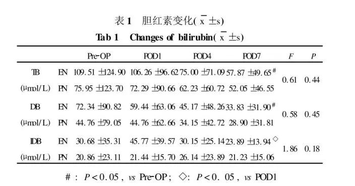 PN對(duì)于改善病人術(shù)后營(yíng)養(yǎng)狀況是有效的。但其亦有諸多弊端,如:不利于胃腸道功能恢復(fù);長(zhǎng)期應(yīng)用可導(dǎo)致腸道粘膜屏障破壞,對(duì)于腸道免疫屏障功能本身就較為低下的梗阻性黃疸病人,更易由此引起腸源性感染;引起不同程度的肝細(xì)胞脂肪浸潤(rùn)和膽汁淤積,加重原有的肝損害;靜脈炎、導(dǎo)管源性感染;費(fèi)用昂貴等。術(shù)后早期EN能明顯刺激腸粘膜細(xì)胞的增殖與修復(fù),有效增強(qiáng)其屏障功能,減少腸道細(xì)菌及內(nèi)毒素的易位。術(shù)后小腸吸收功能雖受到一定抑制,但保留的功能足以吸收滿足機(jī)體需要的營(yíng)養(yǎng)素。因此對(duì)肝功能損害病例術(shù)后早期進(jìn)行EN是合理的。
