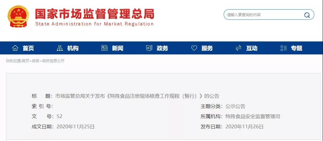 「特醫(yī)食品」國(guó)家總局發(fā)布特殊食品注冊(cè)現(xiàn)場(chǎng)核查工作規(guī)程(暫行)