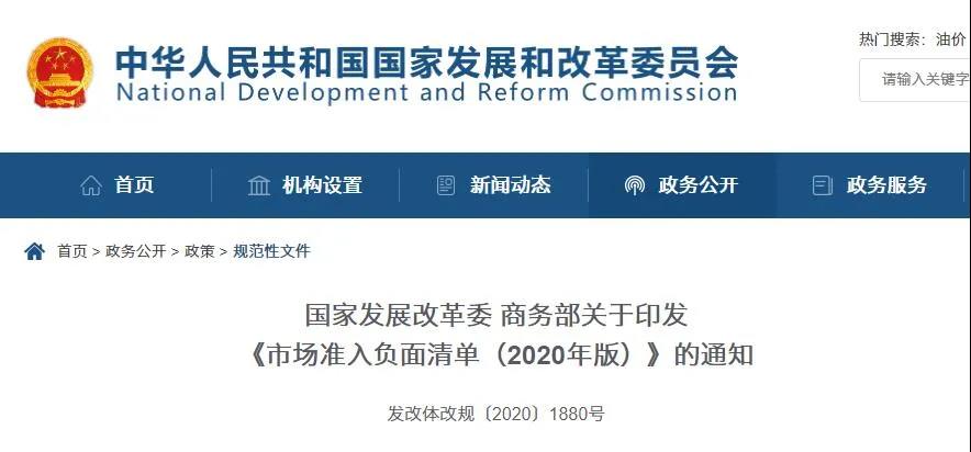 為貫徹落實(shí)黨的十九大和十九屆二中、三中、四中、五中全會(huì)精神,國家發(fā)展改革委、商務(wù)部會(huì)同各地區(qū)各有關(guān)部門對(duì)《市場準(zhǔn)入負(fù)面清單(2019年版)》開展全面修訂,形成《市場準(zhǔn)入負(fù)面清單(2020年版)》,經(jīng)黨中央、國務(wù)院批準(zhǔn),自即日起印發(fā)實(shí)施。各地區(qū)各部門要認(rèn)真抓好清單落地實(shí)施工作,密切關(guān)注市場反映,及時(shí)提出完善市場準(zhǔn)入負(fù)面清單制度的意見建議。國家發(fā)展改革委、商務(wù)部將扎實(shí)做好市場準(zhǔn)入負(fù)面清單制度組織實(shí)施工作,清單實(shí)施中的重大情況,及時(shí)向黨中央、國務(wù)院報(bào)告。