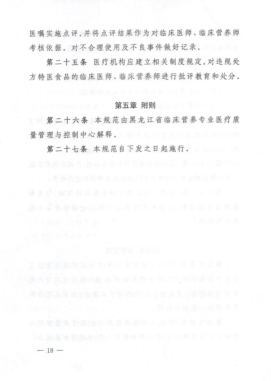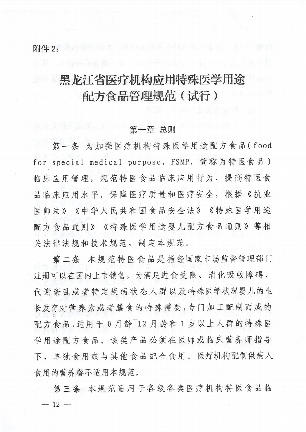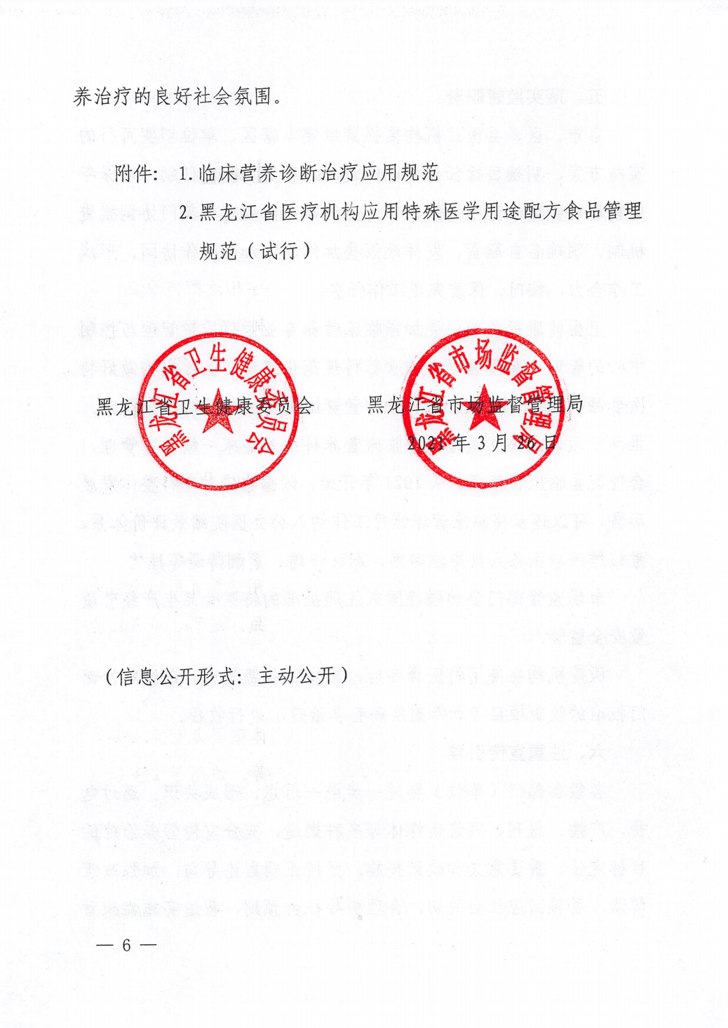 關(guān)于印發(fā)《黑龍江省加強(qiáng)醫(yī)療機(jī)構(gòu)臨床營養(yǎng)工作促進(jìn)特殊醫(yī)學(xué)用途配方食品合理使用的通知》