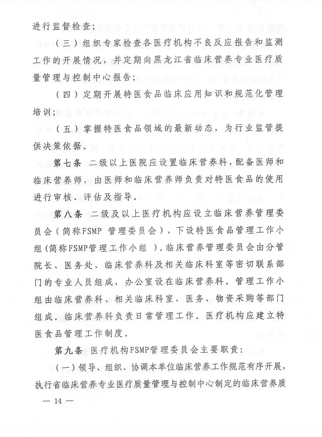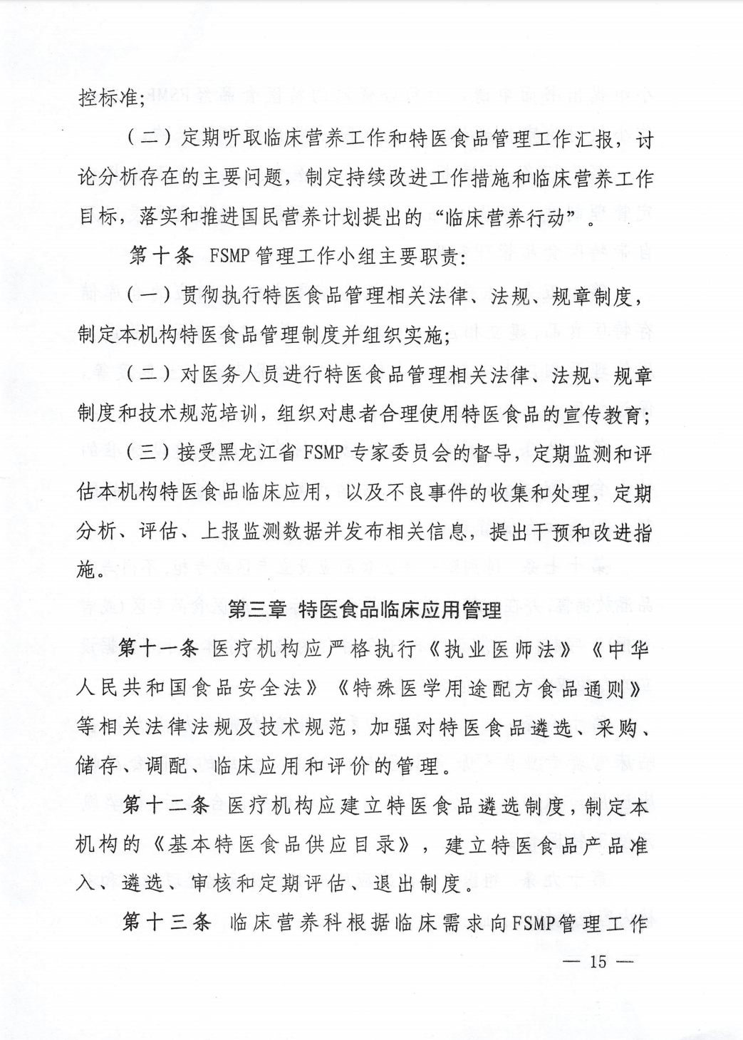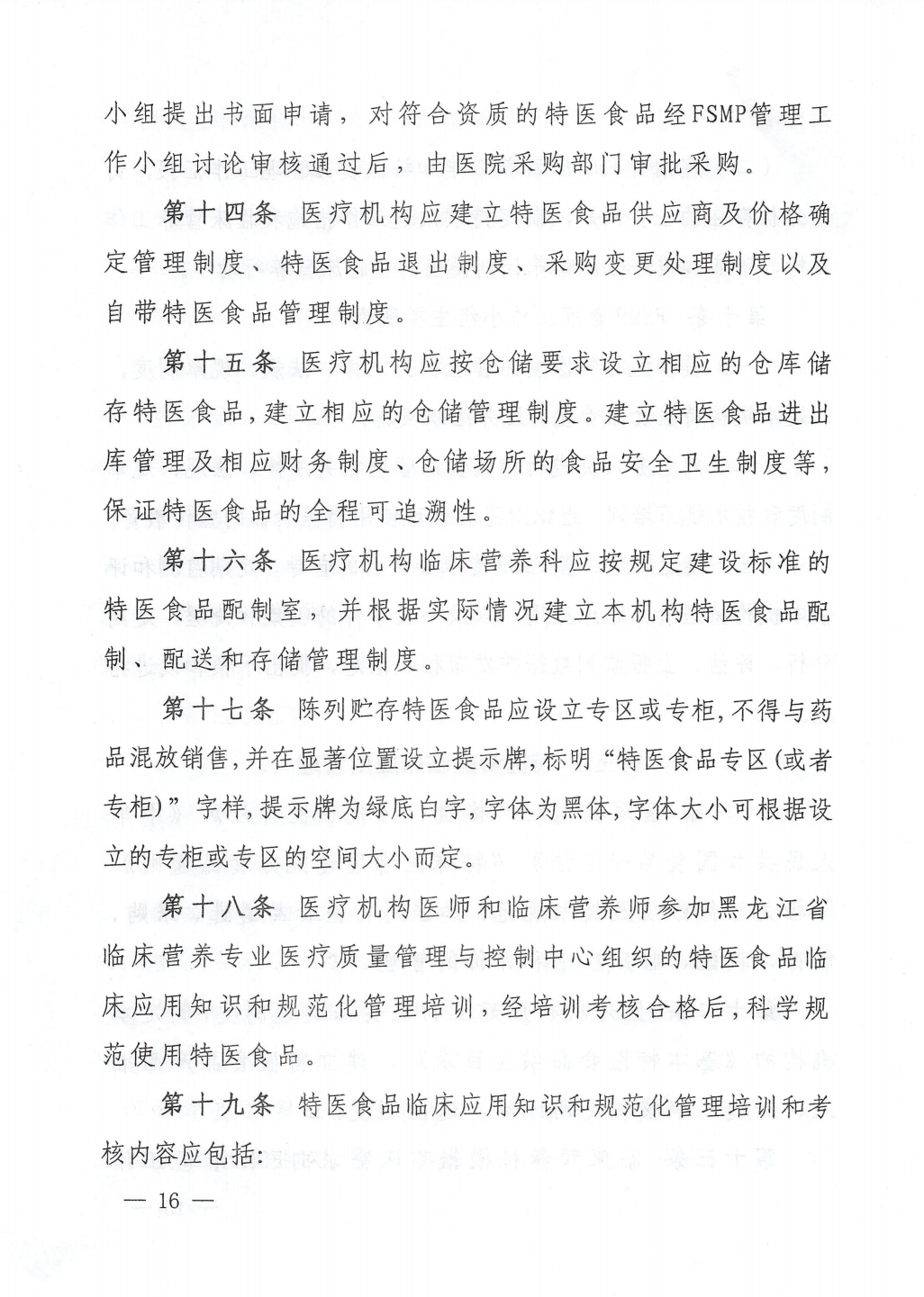 關(guān)于印發(fā)《黑龍江省加強(qiáng)醫(yī)療機(jī)構(gòu)臨床營養(yǎng)工作促進(jìn)特殊醫(yī)學(xué)用途配方食品合理使用的通知》
