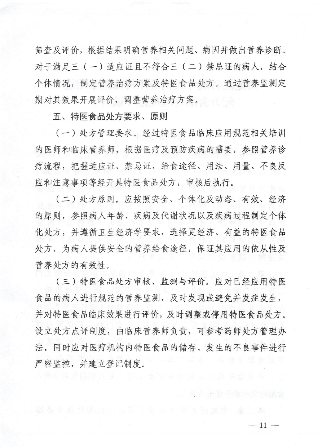 明確了特醫(yī)食品處方原則。由醫(yī)師和臨床營養(yǎng)師按照營養(yǎng)診療流程,掌握適應(yīng)癥及禁忌,規(guī)范開具特醫(yī)食品處方,并作為患者使用憑證的醫(yī)療文書。
