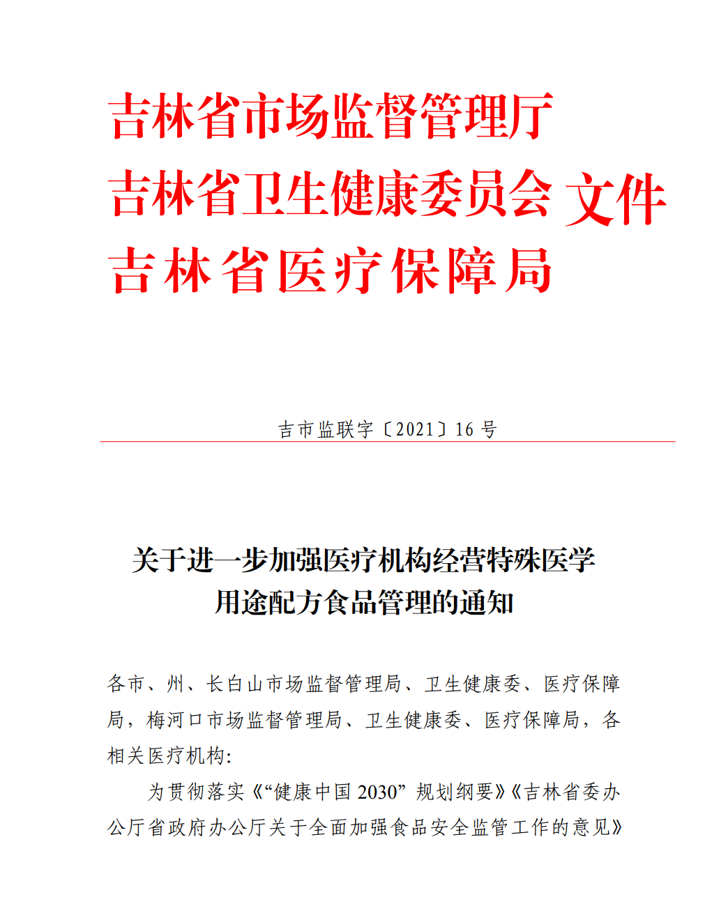 吉林省市場(chǎng)監(jiān)督管理廳吉林省衛(wèi)生健康委員會(huì)