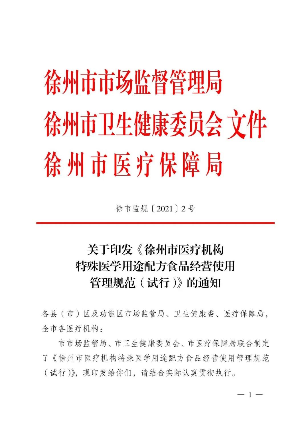 8月3日,徐州市市場監(jiān)管局、衛(wèi)生健康委員會、醫(yī)療保障局聯(lián)合制定發(fā)布了《徐州市醫(yī)療機構(gòu)特殊醫(yī)學(xué)用途配方食品經(jīng)營使用管理規(guī)范(試行)》。 《規(guī)范》對特醫(yī)食品的經(jīng)營要求、臨床使用作出了相應(yīng)要求。這是繼江蘇省發(fā)布《江蘇省特殊醫(yī)學(xué)用途配方食品經(jīng)營使用管理辦法(試行)》后,省內(nèi)第一家發(fā)布特醫(yī)食品經(jīng)營使用管理規(guī)范的地級市,有力的推動了特醫(yī)食品在江蘇省內(nèi)的穩(wěn)步發(fā)展。