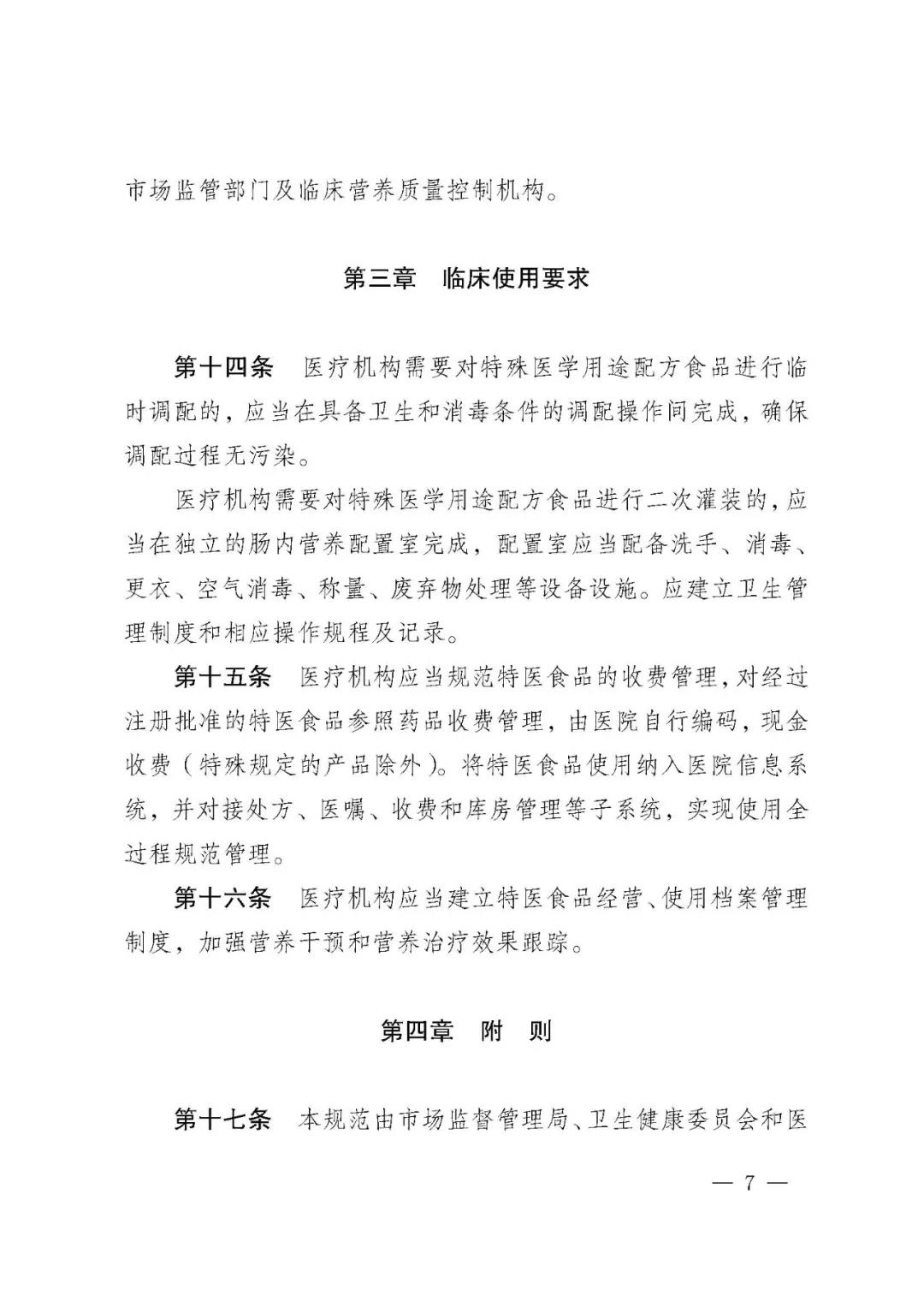 醫(yī)療機構(gòu)應(yīng)當(dāng)規(guī)范特醫(yī)食品的收費管理,對經(jīng)過注冊批準的特醫(yī)食品參照藥品收費管理,由醫(yī)院自行編碼,現(xiàn)金收費(特殊規(guī)定的產(chǎn)品除外)。將特醫(yī)食品使用納入醫(yī)院信息系 統(tǒng),并對接處方、醫(yī)囑、收費和庫房管理等子系統(tǒng),實現(xiàn)使用全過程規(guī)范管理。