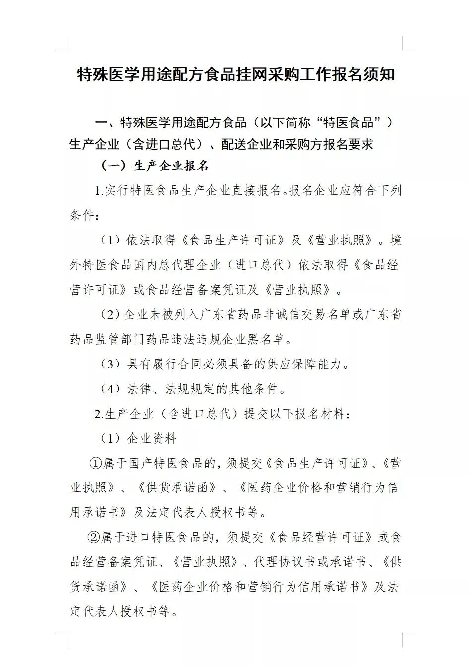 下附特醫(yī)食品掛網(wǎng)采購(gòu)工作報(bào)名須知: