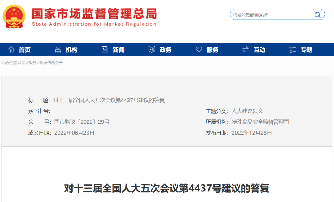 官方答復(fù):關(guān)于將各類特殊醫(yī)學(xué)用途配方食品納入統(tǒng)一監(jiān)管和給予醫(yī)保政策支持的建議