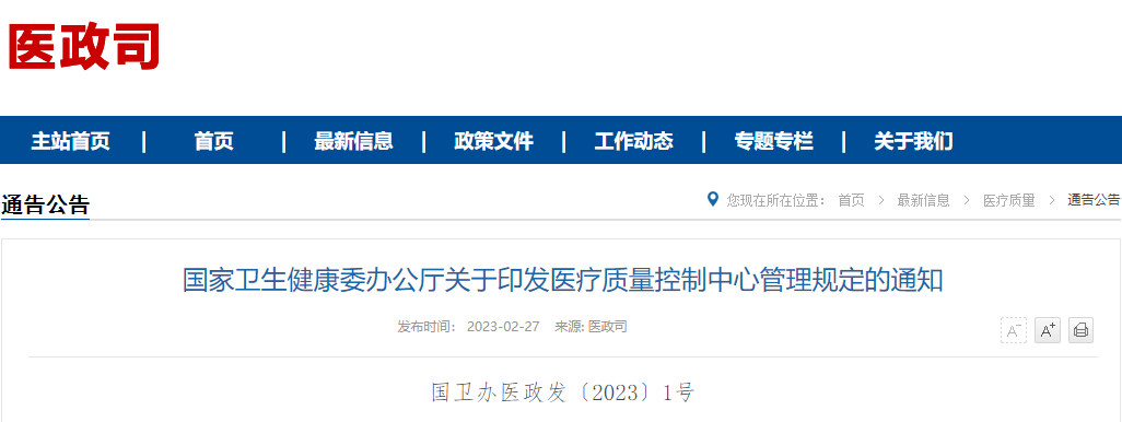 為進(jìn)一步貫徹落實《醫(yī)療質(zhì)量管理辦法》(國家衛(wèi)生和計劃生育委員會令第10號)《醫(yī)療質(zhì)量控制中心管理辦法(試行)》(衛(wèi)醫(yī)政發(fā)〔2009〕51號),加強(qiáng)醫(yī)療質(zhì)量安全管理,完善醫(yī)療質(zhì)量管理與控制體系,規(guī)范醫(yī)療質(zhì)量控制中心的建設(shè)與管理,2月27日,國家衛(wèi)生健康委印發(fā)了《醫(yī)療質(zhì)量控制中心管理規(guī)定》。