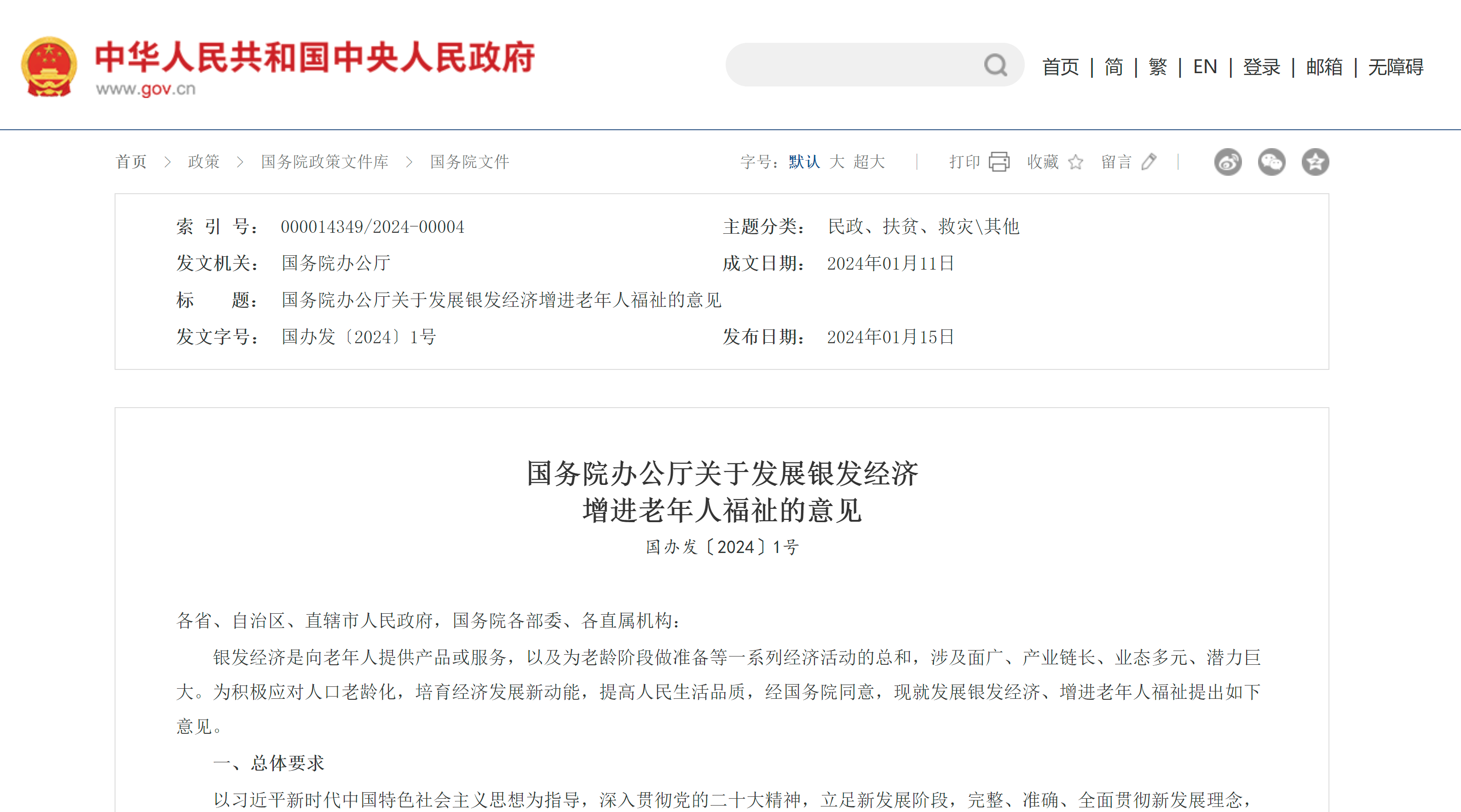 國務(wù)院辦公廳關(guān)于發(fā)展銀發(fā)經(jīng)濟(jì)