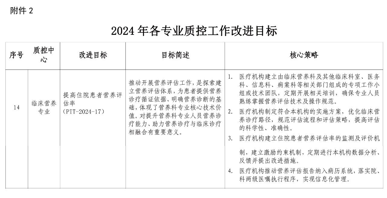 國家衛(wèi)健委 | 2024臨床營養(yǎng)專業(yè)質控工作改進目標(附解讀)