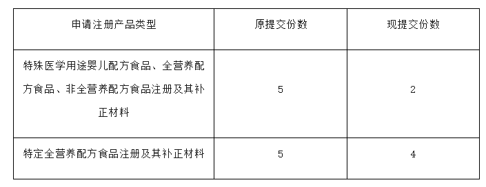特殊醫(yī)學用途配方食品注冊申請材料復印件數(shù)量調整情況表