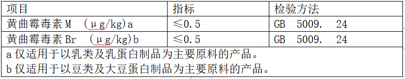 特殊醫(yī)學(xué)用途配方食品中,針對乳類及乳蛋白制品為主要原料的產(chǎn)品需測定黃曲霉毒素M,以豆類及大豆蛋白制品為主要原料的產(chǎn)品需測定黃曲霉毒素B,限量見表3。此外,針對不同的原料,還應(yīng)及時關(guān)注其他真菌毒素污染,比如脫氧血腐鐮刀菌烯醇,玉米赤霉烯酮等真菌毒素的測定(制表:馬超)。