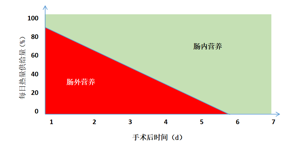 術(shù)后初期需要兼顧腸內(nèi)營(yíng)養(yǎng)和腸外營(yíng)養(yǎng),并盡快過(guò)渡到腸內(nèi)營(yíng)養(yǎng),詳見(jiàn)圖2。