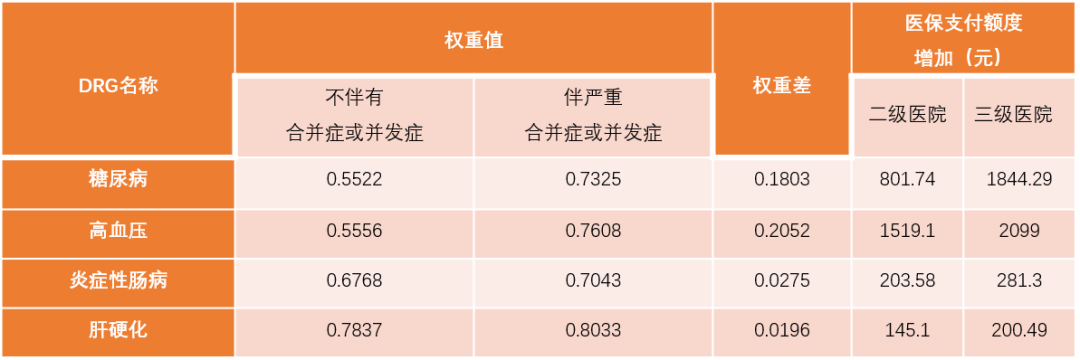 1:幾種常見疾病付費(fèi)權(quán)重變化