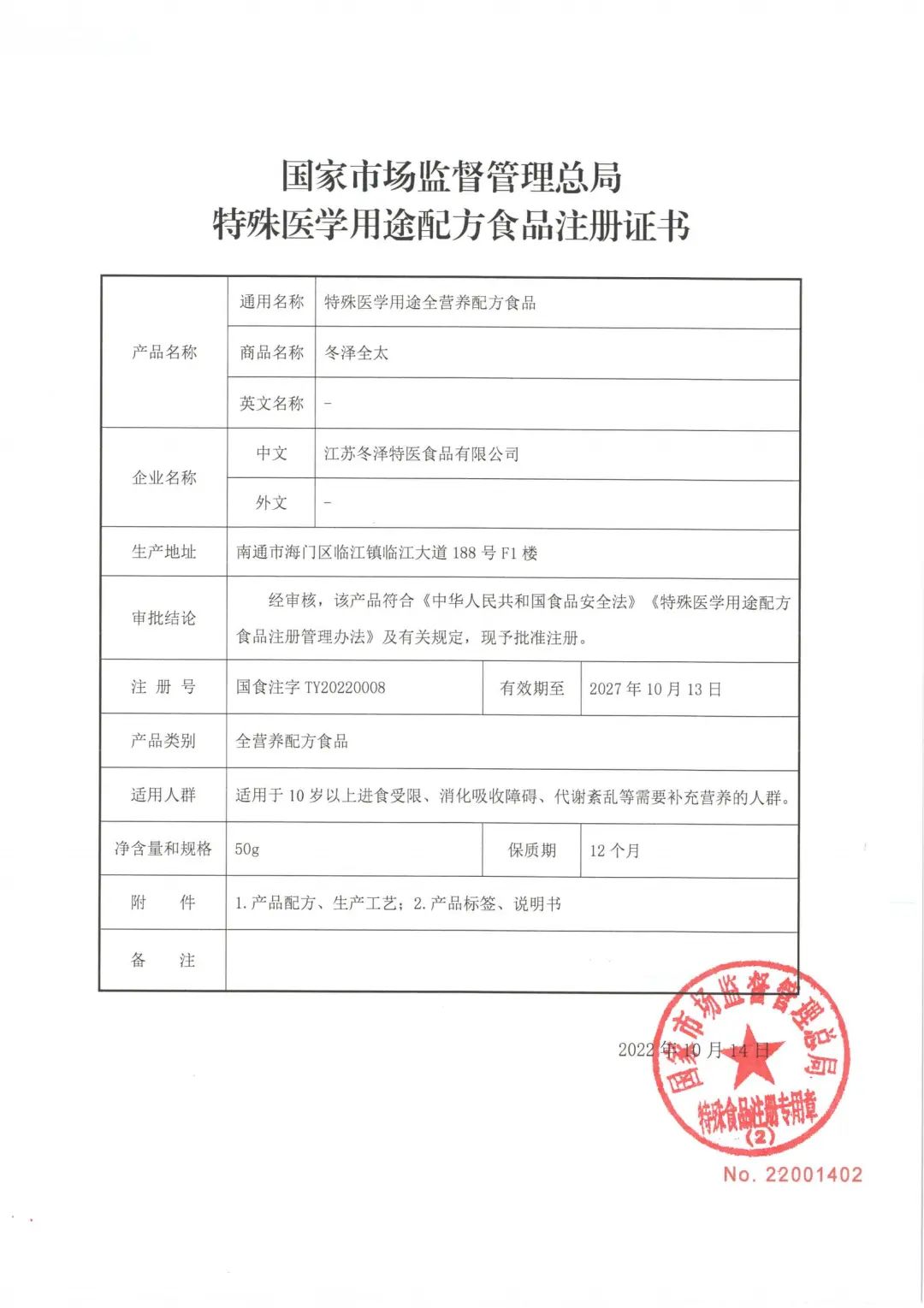 冬澤全太特殊醫(yī)學(xué)用途全營(yíng)養(yǎng)配方食品